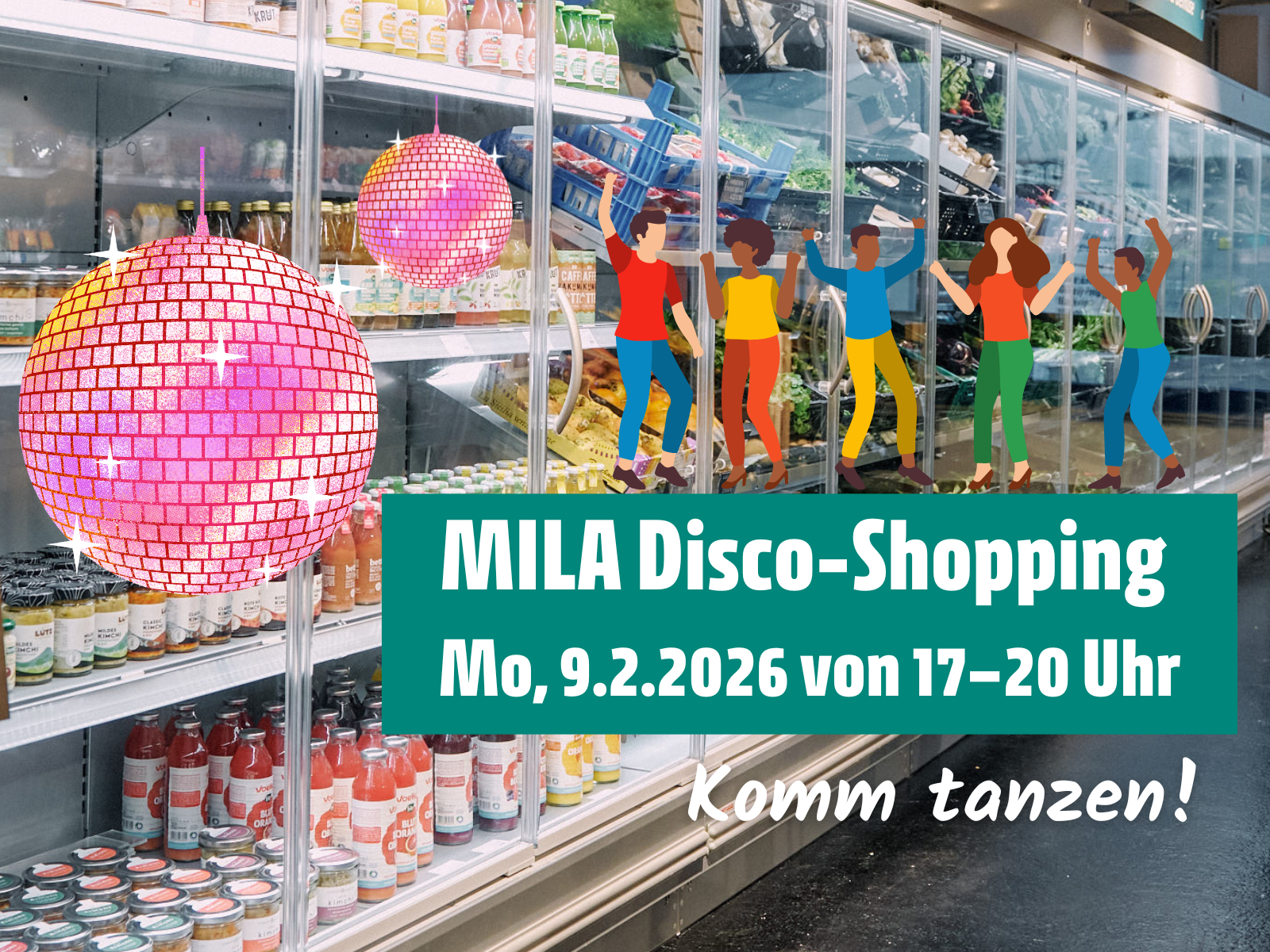 Das MILA Disco-Shopping geht in die zweite Runde! Komm' nach der Arbeit vorbei, tätige deine Einkäufe und lass' dich von groovigen Hits zum Tanzen bringen.